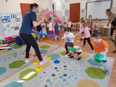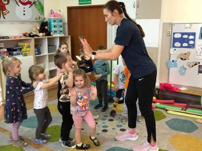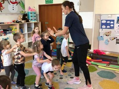 ,,Ruch to zdrowie" to hasło towarzyszyło zajęciom sportowym prowadzonym przez firmę ZVINNA Akademia Ruchu. Wyjątkowy gość p. Daria Przybylak - była reprezentantka Polski w piłce siatkowej, która prowadziła zajęcia - zaangażowała wszystkie dzieci. Przedszkolaki z wielką chęcią brały udział w proponowanych ciekawych ćwiczeniach z wykorzystaniem różnorodnych przyborów gimnastycznych. Wspólny trening i mini zawody wprawiły dzieci w cudowny nastrój i dostarczyły mnóstwa radości.