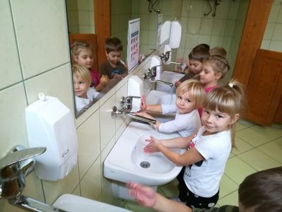 Dbałość o zdrowie dzieci, to jedno z zasadniczych zadań naszego przedszkola. Ważną aktywność, którą pragniemy wyuczyć jako nawykowe działanie, jest dbanie o higienę. Jednym ze sposobów realizacji tego zamierzenia był udział naszych przedszkolaków w Światowym Dniu Mycia Rąk, Wszystkie zajęcia i zabawy koncentrowały się wokół hasła ,,Czyste ręce zdrowia więcej”! Mamy nadzieję, że wszyscy w naszym przedszkolu będą mieć zawsze czyste, lśniące i pachnące myłem ręce! Brawo!