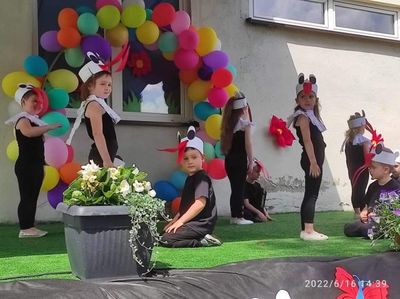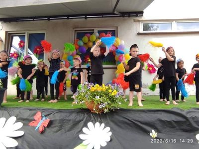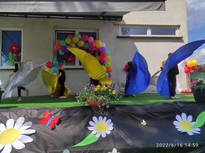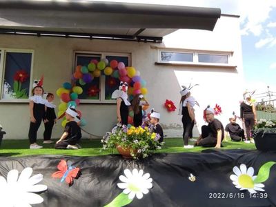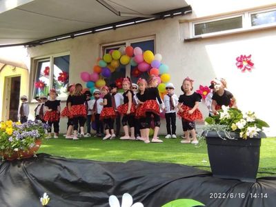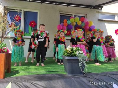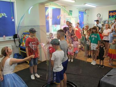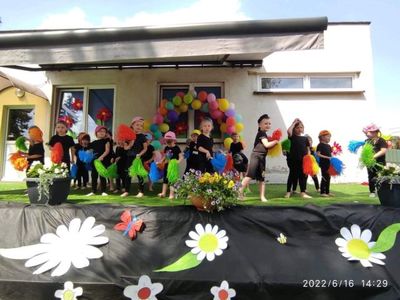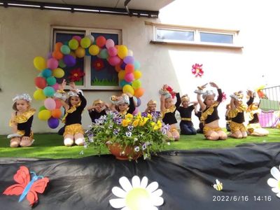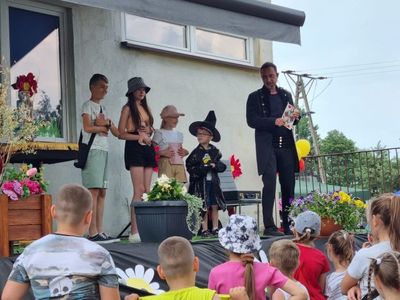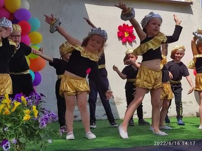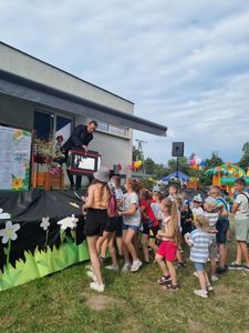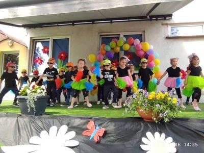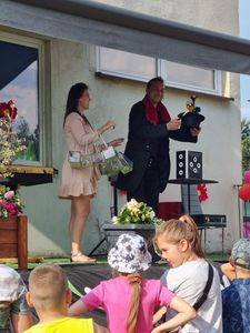 Program festynu przebiegał następująco: - występy przedszkolaków - gość specjalny Psi Patrol - prezentacja par tanecznych ze Szkoły Tańca Towarzyskiego Art. Of Dance - pokaz baniek mydlanych - ,,Świat iluzji, czyli czary-mary" - loteria fantowa Dodatkowe atrakcje: - kącik bezpieczeństwa prowadzony przez policję z Krotoszyna - rzuty lotkami i innymi przedmiotami - dmuchany zamek, rampa - przejazdy na kucyku Wszystkim uczestnikom składamy podziękowanie za liczny udział w naszej imprezce!!!