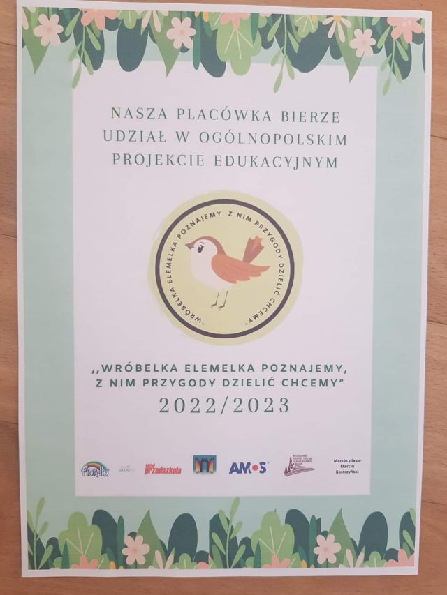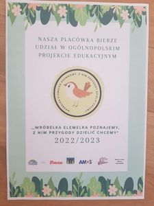 22.09.2022 - MOTYLKI POZNAJĄ ELEMELKA, GŁÓWNĄ POSTAĆ PROJEKTU ,,WRÓBELKA ELEMELKA POZNAJEMY, Z NIM PRZYGODY DZIELIĆ CHCEMY"