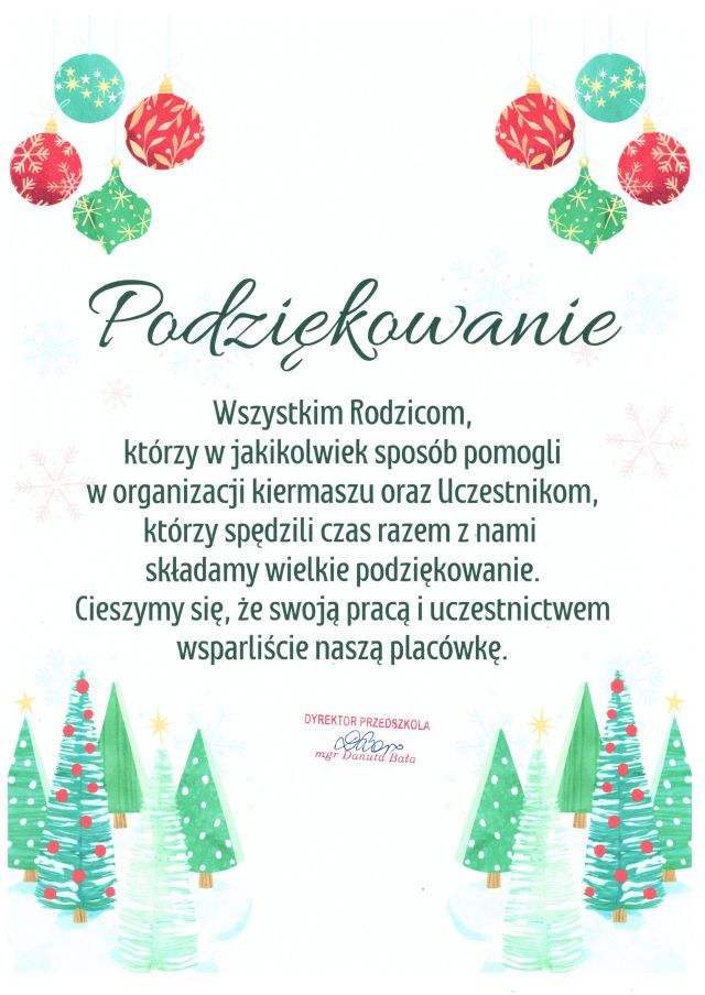 01.12.2024 - KIERMASZ ŚWIĄTECZNY W PRZEDSZKOLU