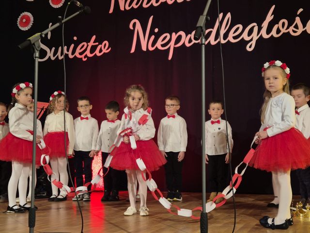 11.11.2025 - Gminna Uroczystość z okazji Święta Niepodległości organizowana przez Urząd Gminy Rozdrażew. Występ 5 - latków z grupy Biedronek pt. ,, Mały Patriota"