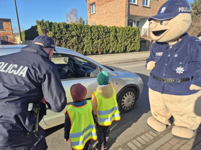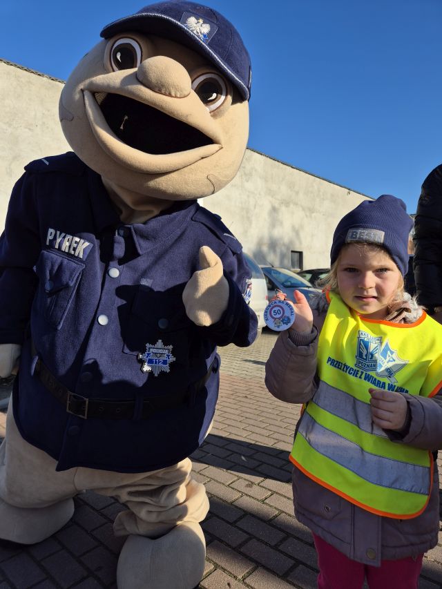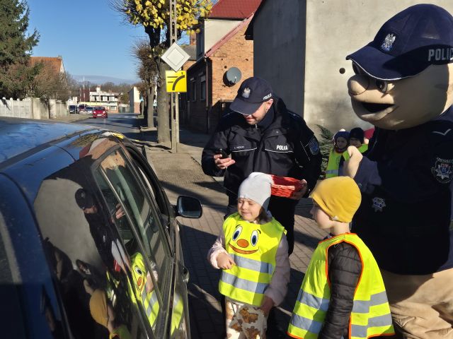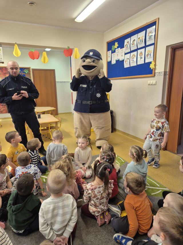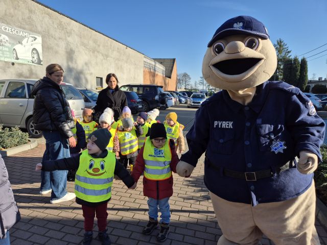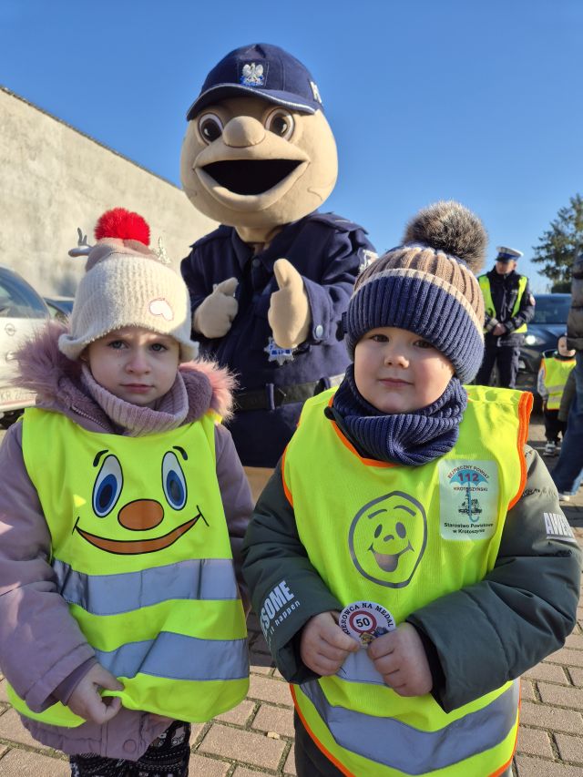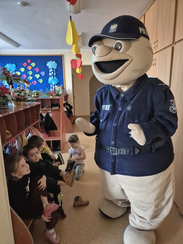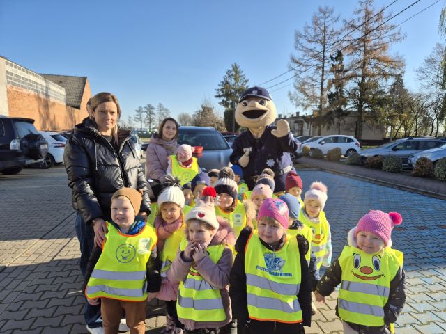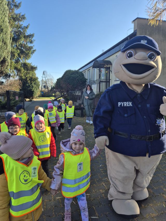 Krotoszyńscy policjanci odwiedzili nasze przedszkole w ramach akcji ,,Bezpieczna droga". Spotkanie było okazją do rozmów z najmłodszymi na temat bezpieczeństwa na drodze. w spotkaniu uczestniczył Sierżant Pyrek - ulubieniec dzieci. Największą atrakcją była możliwwość ,,wcielenia" się w rolę małych policjantów. Dzieci w towarzystwie Sierżanta Pyrka oraz funkcjonariuszy policji uczestniczyli w badaniu pomiaru prędkości wśród kierowców. Za jazdę z prawidłową prędkością przedszkolaki wręczały zawieszki ,,Kierowca na medal"