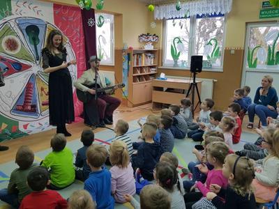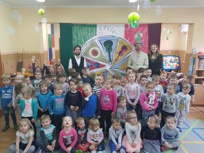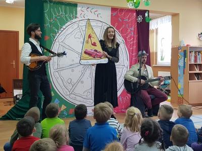 Tym razem grupa Mozaika, przeniosła nas do Włoch. Muzyczna pizza wypełniona byłą dźwiękami gitary oraz mandoliny. To jednak nie wszystkie ciekawostki jakie poznały dzieci. Prowadząca wspominała również o słynnej Krzywej Wieży w Pizie oraz cudownym, operowym głosie Luciano Pavarottiego czy charakterystycznych dla włoskiej muzyki skrzypcach czy akordeonie. Była mowa także o samochodach, modzie i jedzeniu. Rozbawione dzieci bawiły się świetnie i na długo zapamiętają przekazaną im wiedzę.