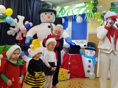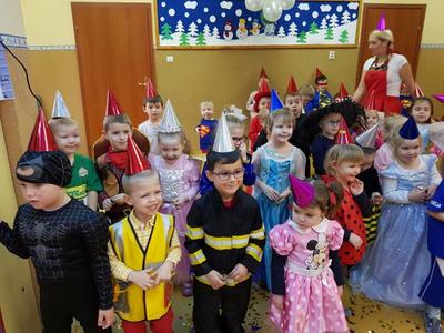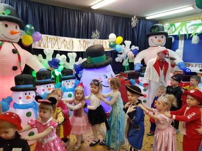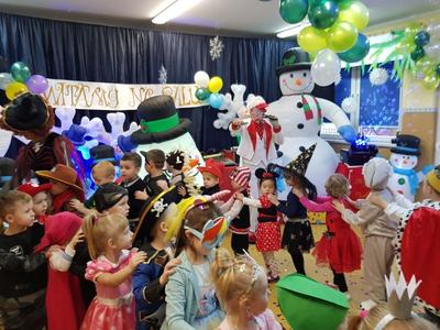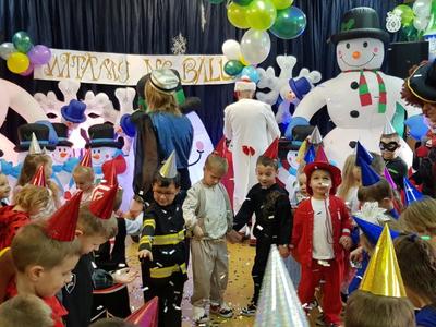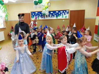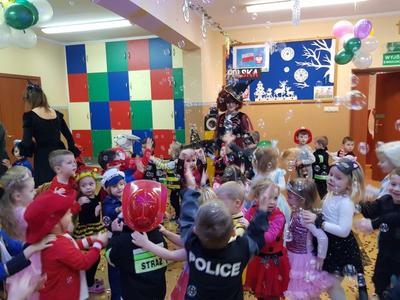 Clown Ruphert i Rico zapewnili mnóstwo atrakcji przedszkolakom. W programie pt. ,,Karnawałowe tańce połamańce" dominowała cudowna zabawa, tańce i konkursy z mnóstwem nagród i gażetów cyrkowych. Całość baliku uświetniły deszcze baniek mydlanych, deszcz banknotów oraz wyrzutnie confetii.Na zakończenie chętne przedszkolaki mogły skorzystać z malowania włosów i brokatowej posypki. Było wspaniale!!!